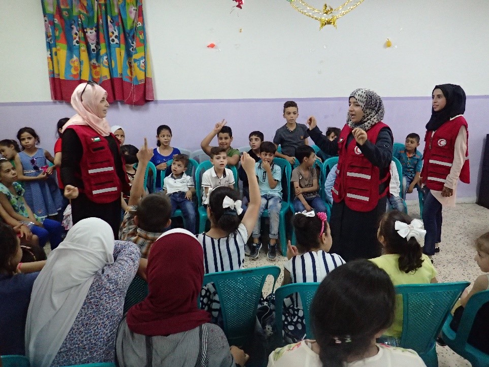 現在、私が派遣されているヨルダンに避難しているシリア難民は、約65万人で、ヨルダンの人口の約7%を占めています。また、およそ80%の人が知り合いを頼るなどして難民キャンプの外で暮らしており、長期化する避難生活の中で確かな収入もないまま、持ってきた家財道具を売り払ったり、子どもを学校へ行かせず働かせたりして生活をしています。元々パレスチナやイラクなどからの難民が多くいるヨルダンの人々は、難民の受け入れに寛容です。しかし、あまりの数の多さに対応しきれず、初めは無料で受けられていた医療サービスも打ち切られてしまいました。そこで連盟は、2014年からヨルダン赤新月社(以下、ヨルダン赤)とともに、シリア難民だけでなくその流入により影響を受け貧困などで社会的に弱い立場にあるヨルダン国民に対しても健康状態の改善と疾病予防について広く啓発活動を行う地域住民参加型保健(CBHFA)事業を実施しています。今年は、ヨルダン北部のシリア難民が多く住む6行政区で活動を展開し、110人の地域保健ボランティアが、家庭訪問や学校などでのキャンペーンを通じて延べ2万7千人以上の人々に健康教育活動を行いました(2017年10月現在、ヨルダン赤調べ)。教育内容は生活習慣病やその他感染症の予防、救急法、妊産婦及び乳幼児のケア、女性や子どもの保護についてなど、多岐に渡ります。