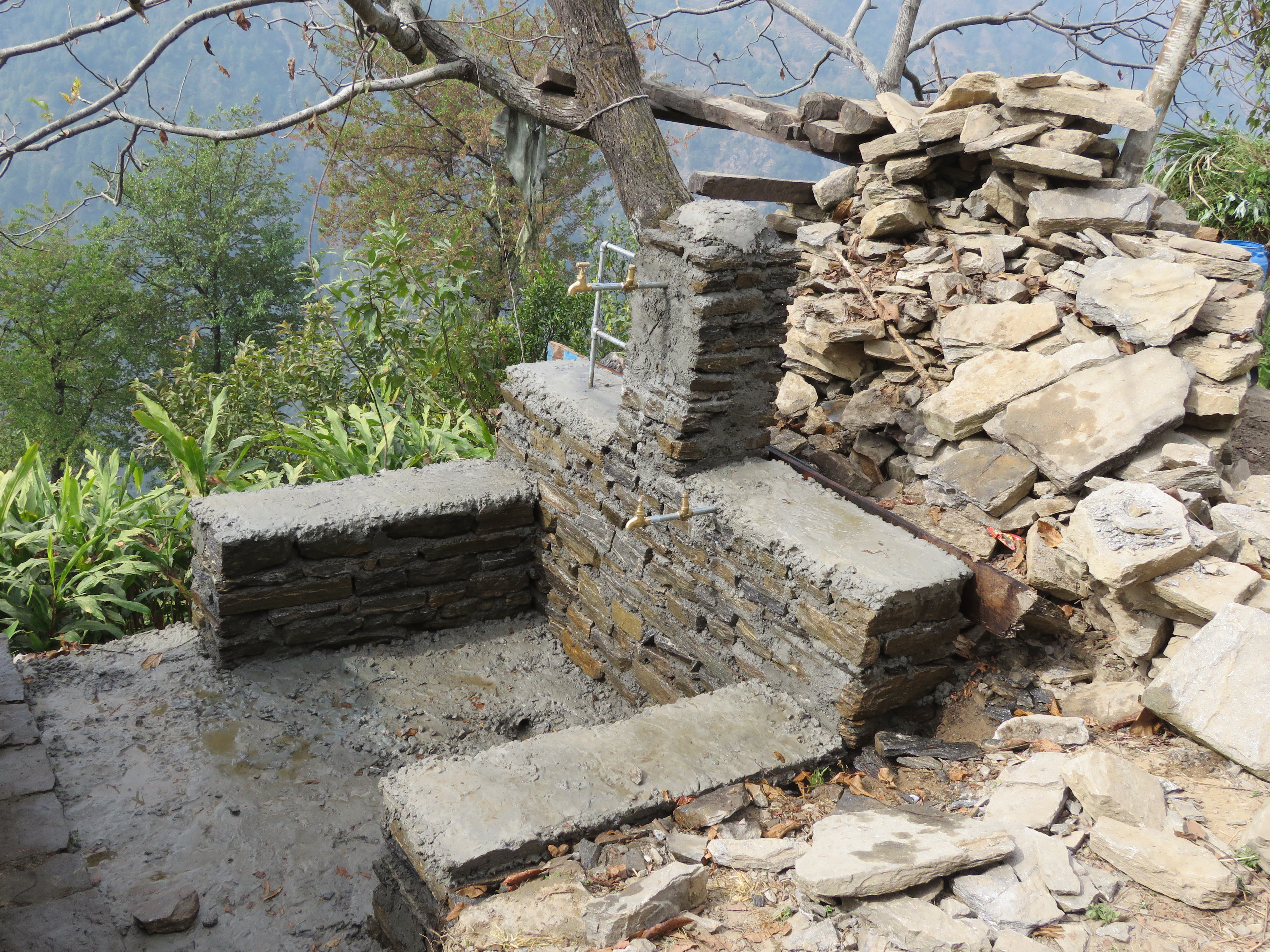 日赤が支援するのは、首都カトマンズから北東約29キロに位置するシンドパルチョーク郡の山間地域の村々です。この辺りは、各家庭につながる公共の水道設備が必ずしもあるわけではありません。住民は何とか水を得るために、村の中心地にある貯水槽に直接ホースをつないでみたり、時には、山から湧きでる水を汲みに行ったりすることもあります。