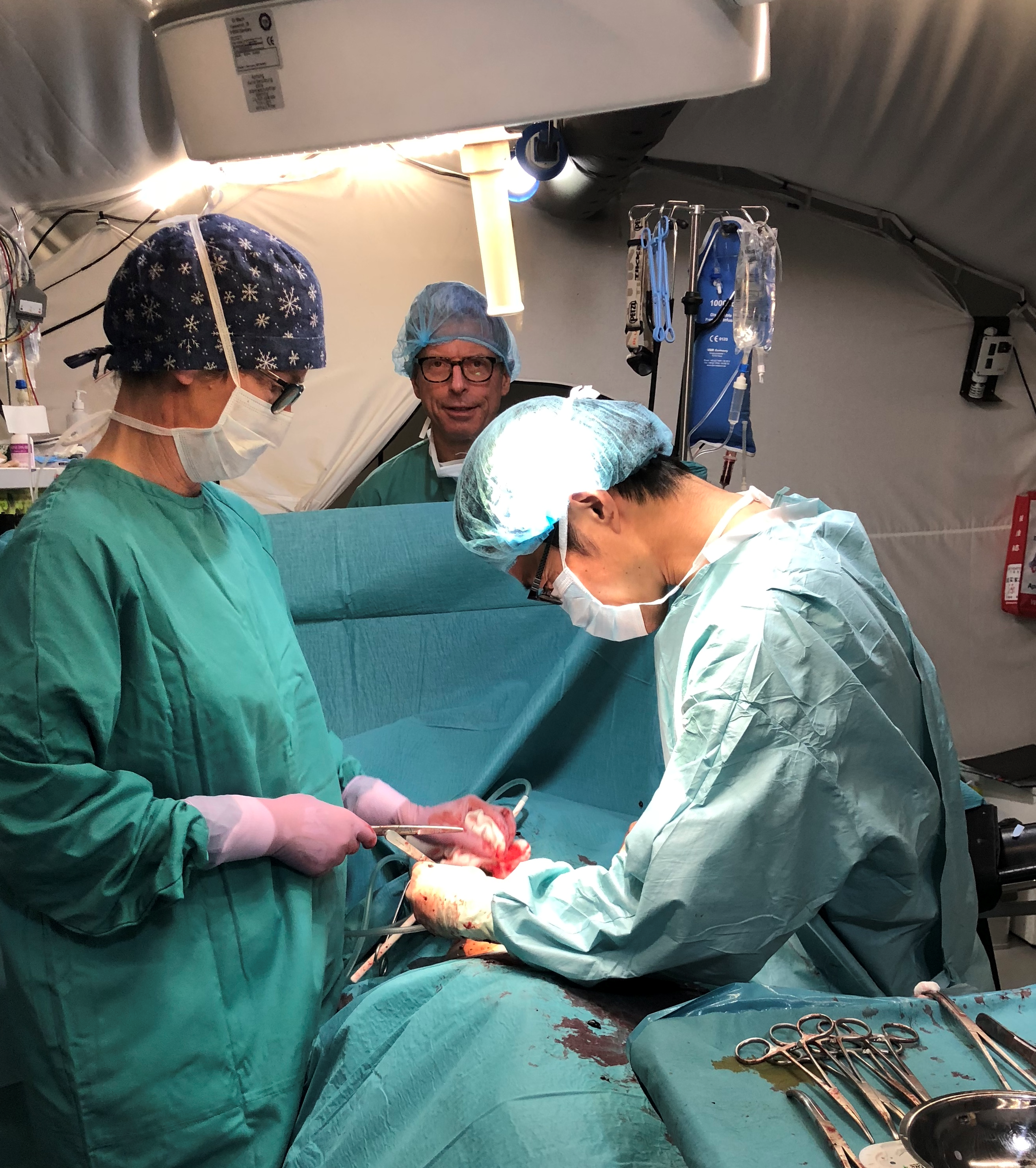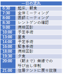 外科医の私が担当したのは主に手術です。手術を行うのは医師1人と看護師4人。医療資機材やスタッフの数も限られているので、工夫をしながらそこにある物や、いる人で対応していかなくてはいけません。