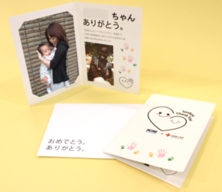 2013年に住友商事株式会社と連携して始まった産休サンキュープロジェクトは、2018年6月現在で6社(住友商事株式会社、SCSK株式会社、ヤフー株式会社、木村情報技術株式会社、株式会社ローズマロウズ、P&Gジャパン株式会社パンパース)に賛同していただいています。例えば、SCSK株式会社は、年間の社員のお子様の誕生数×3(サン)9(キュー)00円をプロジェクトに寄付し、そのお子様にサンキューカードを送付しているそうです。
