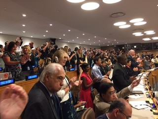 一年前の2017年7月7日、ニューヨークの国連本部で122ヵ国の賛成のもと、核兵器禁止条約が採択されました。これまで国際法で明確に禁止されることのなかった唯一の大量破壊兵器である核兵器が違法であると認識され、「核兵器のない世界」へ、歴史的な一歩を踏み出したのです。