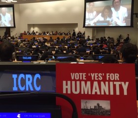 核兵器禁止条約は、50ヵ国が批准した時点で発効します(7月5日現在11ヵ国が批准※)。赤十字は、核兵器禁止条約への各国の署名及びそれに続く批准に向け、日本を含む各国への働きかけを行っています。