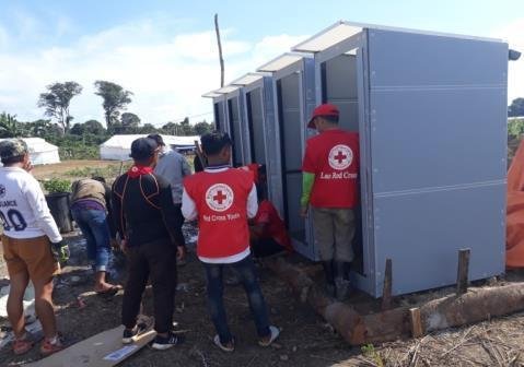ラオス赤十字社は、ダム決壊による洪水被災者救援のため、同国内にすでに配備されていた給水・衛生災害対応キット2基を現地で展開。円滑な活動実施のため、前年に研修・訓練を受けた同赤十字社のスタッフやボランティアも現地へ派遣しました。7月27日にはアタプー県に浄水ユニット2基を設置し、被災者3,750人に対して、一日あたり約1万5,000リットルの水を供給しました。ラオスではその後も雨季の影響で洪水が各地で発生し、ラオス赤十字社は被災者への救援活動の一環として給水・衛生活動を実施。2018年だけで給水・衛生災害対応キットを4回発動し、全体で被災者1万3,500人に対して合計18万5,000リットル以上の水を供給しました。被災者からは、安全な飲み水を迅速に支援したラオス赤十字社への感謝とともに、簡易トイレの設置や衛生促進のための活動も避難生活に大変役立ったとの声が聞かれました。