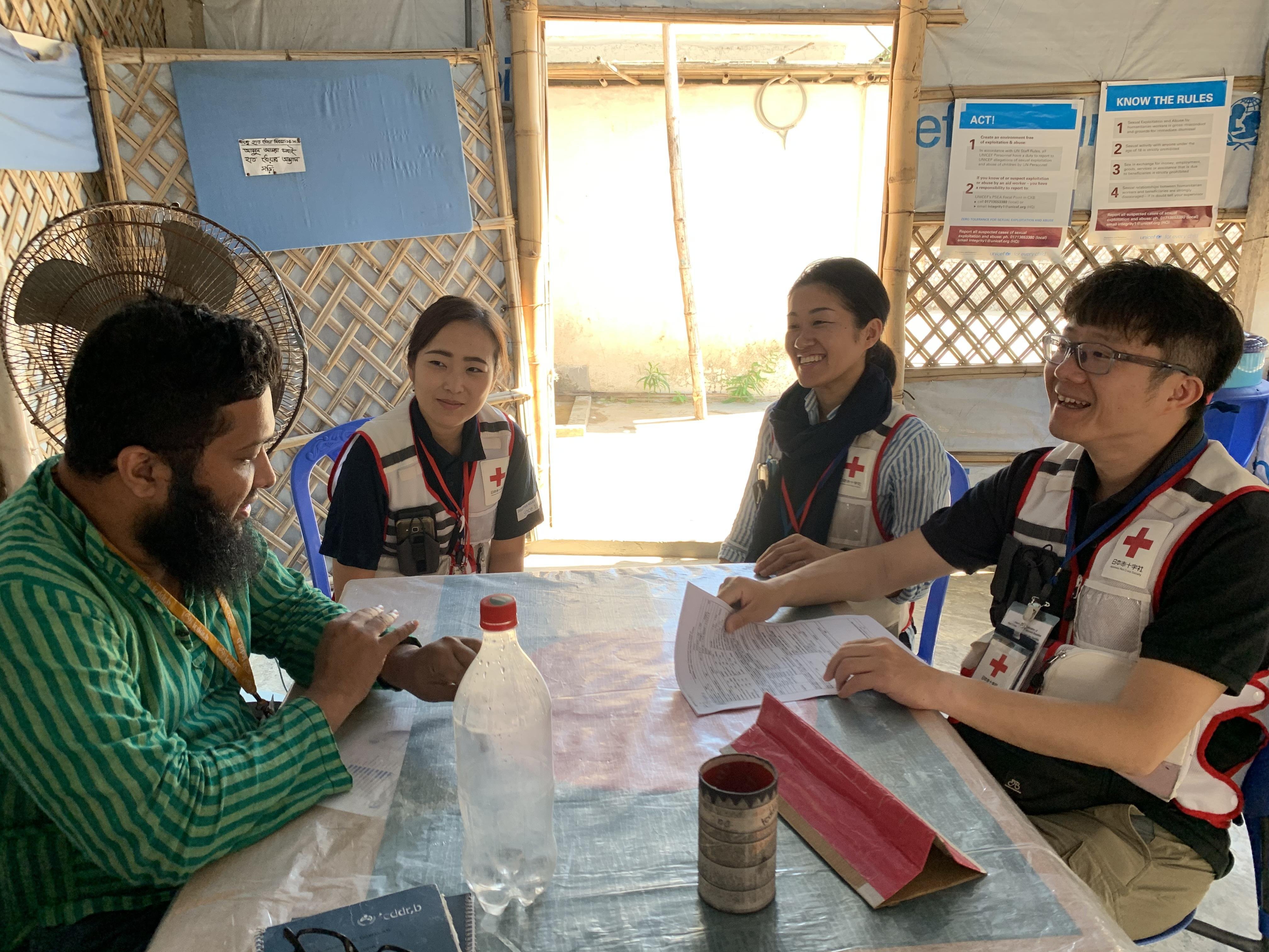 日本赤十字社(以下、日赤)は、2017年8月にミャンマー・ラカイン州で発生した暴力行為を逃れ、隣国バングラデシュへ避難してきた人々を支援するため、同年9月から緊急支援を開始、2018年5月からは中期支援へ切り替わり、バングラデシュ赤新月社(以下、バ赤)と共に、コックスバザールにて診療所の運営等を行っています。