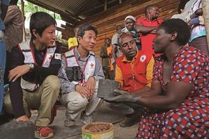 世界では、全人口の少なくとも半数の人々が基本的な保健サービスを享受できていないと言われています。人びとのいのちを守るには、「自らのいのちと健康は自分で守る」という意識を一人ひとりが持つことが何より大切です。赤十字は、現地住民とともに、地域の生活習慣や文化をよく理解した上で、まずは耳を傾けてもらえるよう、村々を回って講習会や手作りのモバイルシネマ(屋外映画会)を開くなど、趣向を凝らした取り組みを通して病気やけがの「予防」の大切さを広める活動を展開しました。