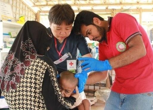 紛争等が原因で難民や国内避難民となった人びとは、医療や水、食糧など基本的な人道ニーズもままならない厳しい環境下での生活を余儀なくされています。赤十字は、各国のニーズに応じて、医療支援、救援物資や医薬品の配布、こころのケア、給水支援、生計支援、離散家族の安否調査などを実施しました。また、医療施設や医療従事者、一般市民が攻撃の対象とならないよう国際人道法の普及にも取り組みました。
