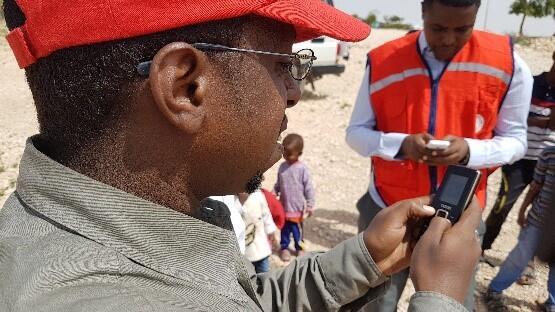 ソマリア赤のボランティアは、自分たちのコミュニティでCOVID-19の症状を訴える人が出た場合に、携帯電話のテキストメッセージを送信し、ソマリア赤や保健当局に注意を喚起することができます。リアルタイムでの報告とモニタリング、さらに保健当局を含むすべての関係者へ情報共有することで、早期対策が可能となり、感染拡大を未然に食い止めることにつながっています。
