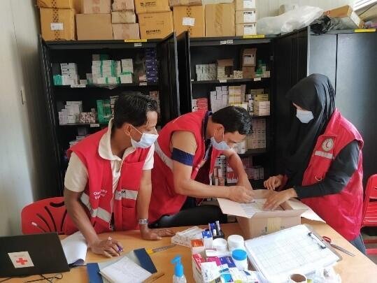 避難民ボランティアのマカラマさんのインタビューは、避難民ボランティアのマカラマさんのインタビューは、日赤が支援しているキャンプ内のバ赤診療所で医薬品や衛生用品の管理を担当するバ赤スタッフの薬剤師ナイマさんが行ってくれました。(右写真:マカラマさん©BDRCS)