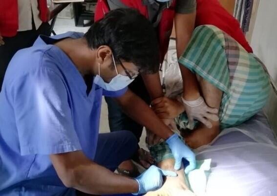 日赤は、2017年9月に緊急支援を開始、緊急医療チームの派遣を始めました。2018年5月からは、避難民や地元コミュニティの人びとのレジリエンス(逆境から立ち上がる復元力、回復力)の強化を見据えながら、中期支援に移行しました。2019年9月には、日赤の支援に加え、在バングラデシュ日本大使館の草の根無償資金協力の支援を受け、避難民キャンプ内(キャンプ12)にこれまでの仮設診療所に代わるプレハブ式の診療所が完成しました。