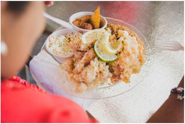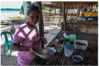 (写真:地元で大人気、ラブリーさん自慢の魚フライと豆ごはん ©Zyandric Jones/IFRC ※レシピ動画[英語]はこちら)