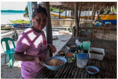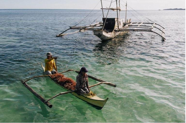 ミンドロ島の南にある小さな島に暮らすロニーさんとゲリンさん夫婦は、島の多くの人たちと同様に、海で様々な種類の海藻を養殖して生計を立てています。毎朝、2人は地元でバンカーと呼ばれる小さなボートを漕いで、海辺にある自宅から沖合いの浅瀬にある養殖場で海藻の世話をします。フィリピンで海藻は、地元の人びとが大好きな海藻サラダ「アチャラ」やスープといった料理の食材としてだけでなく、アイスクリームやシャンプーといった商品にも使われる大切な材料です。