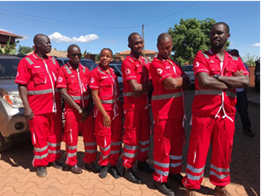 新しい制服を着て、誇らしげにポーズをとるウガンダ赤十字社・救急法講習センターの指導員たち (c) 国際赤十字・赤新月社連盟
