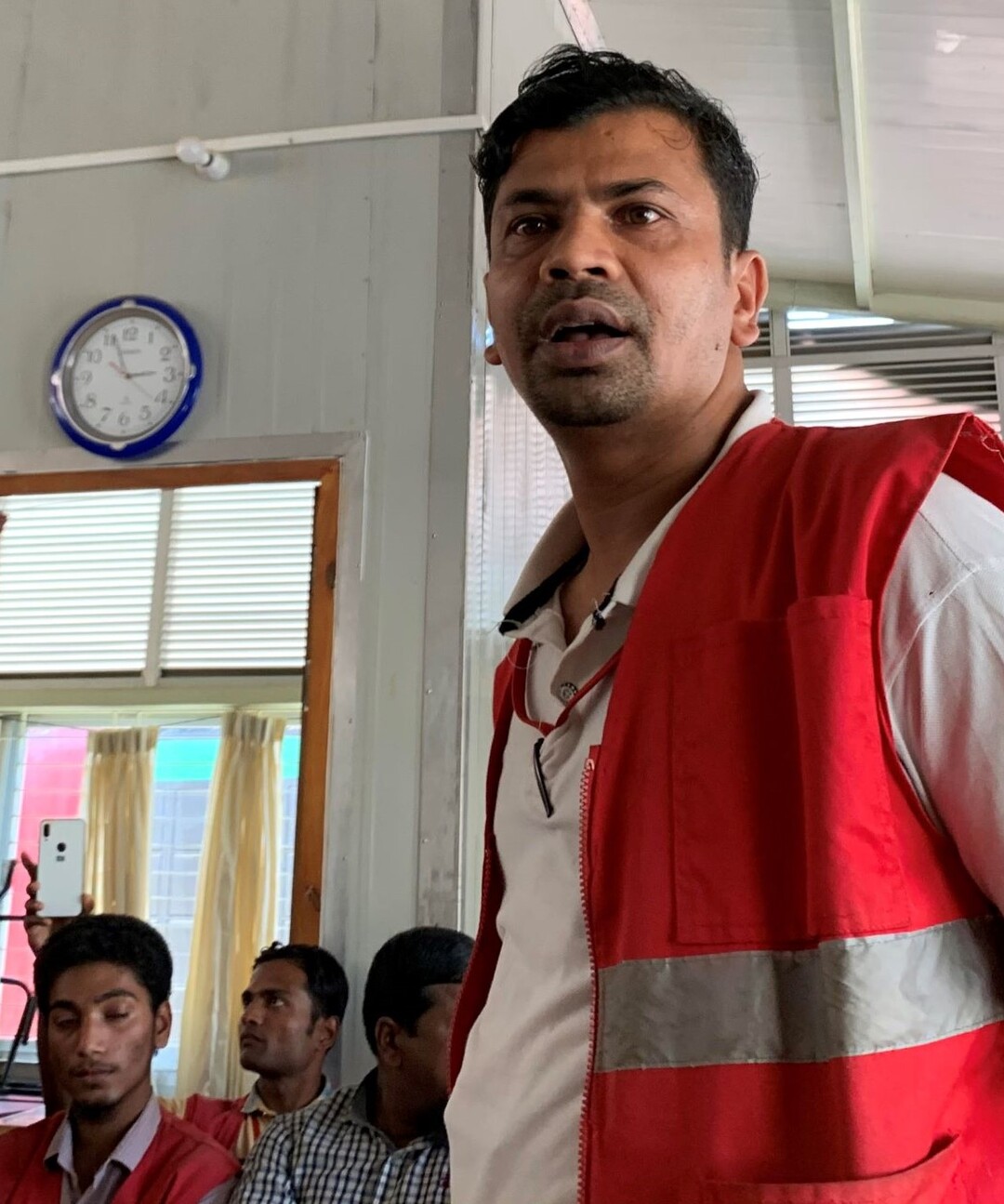 PSS担当のサイマ職員へ研修を行う中島要員©日本赤十字社