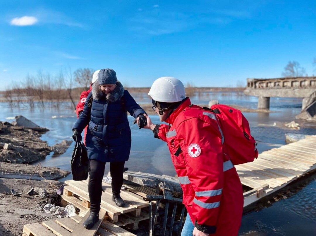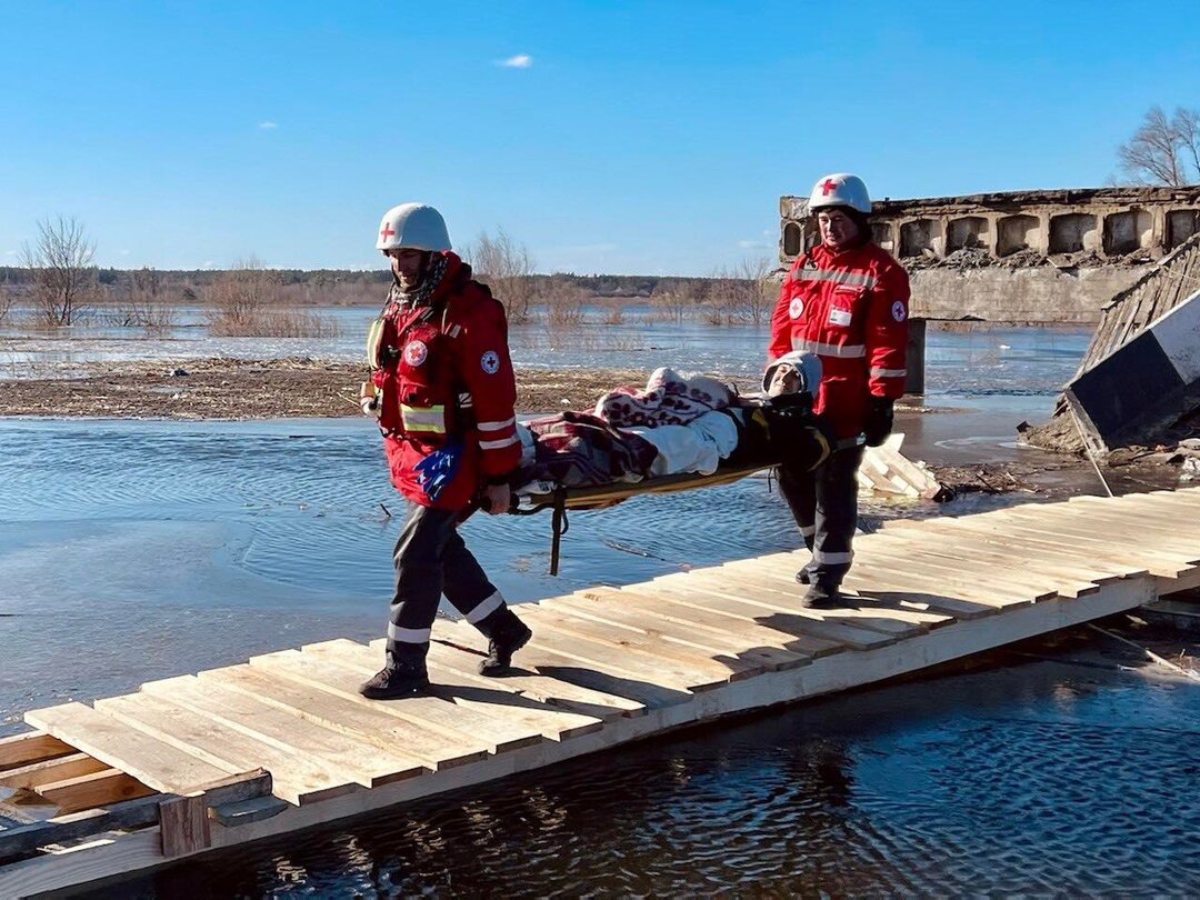 2022年2月、ウクライナのキーウ州に位置する町ヴィーシュホロドにて、隣町デミディフへ繋がる橋が破壊されたとき、現地の人々は町から避難することも、人道支援を受けることもできませんでした。ウクライナ赤十字社のスタッフ・ボランティアそして地元住民が協力して川を渡る歩道を建設、15,000人を超える人々がその歩道を利用して町から避難することができました。また、人々の避難のみではなく、歩道の建設により多くの救援物資を持ち込むことに成功し、大きな人道支援に繋がりました。