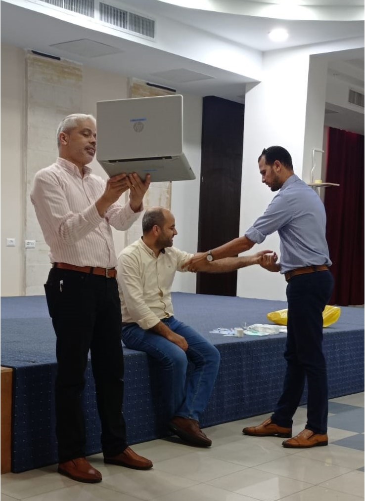 コロナ禍前から、日赤チームの一員として活動しているのはハムディ職員です。遠隔支援となった後は、唯一の日赤職員として現地で奮闘しています。「遠隔では難しいこともたくさんありますが、「日赤スタッフがガザに来て教えてくれたことや、遠隔となった後も多くのサポートがあったので、ここまで頑張ることができました。本当に感謝しています。」困難な遠隔支援ですが、日赤は今後も、機会を制限された現地の医師や看護師に学びの場を提供していきます。