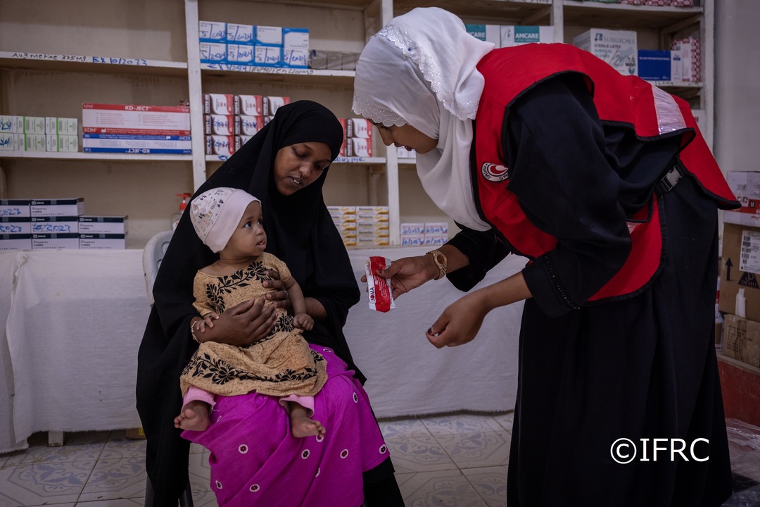 ソマリア赤新月社が運営するクリニックで栄養失調のスクリーニング検査を受けるマリダちゃん(9か月)