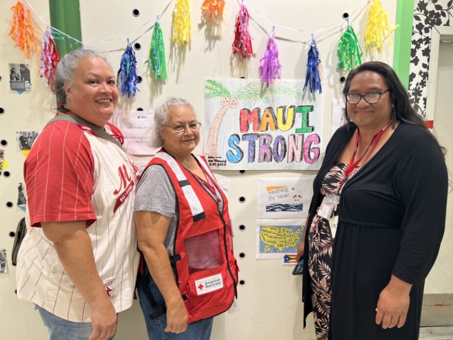 マウイ島在住トニさんとマーシーさん姉妹はいとこの呼びかけにより、発災後すぐに米国赤十字社のボランティアに登録しました。彼女たちは自らが被災者でありながら、焼失した故郷や、島民への恩返しのため被災者支援を行っています。