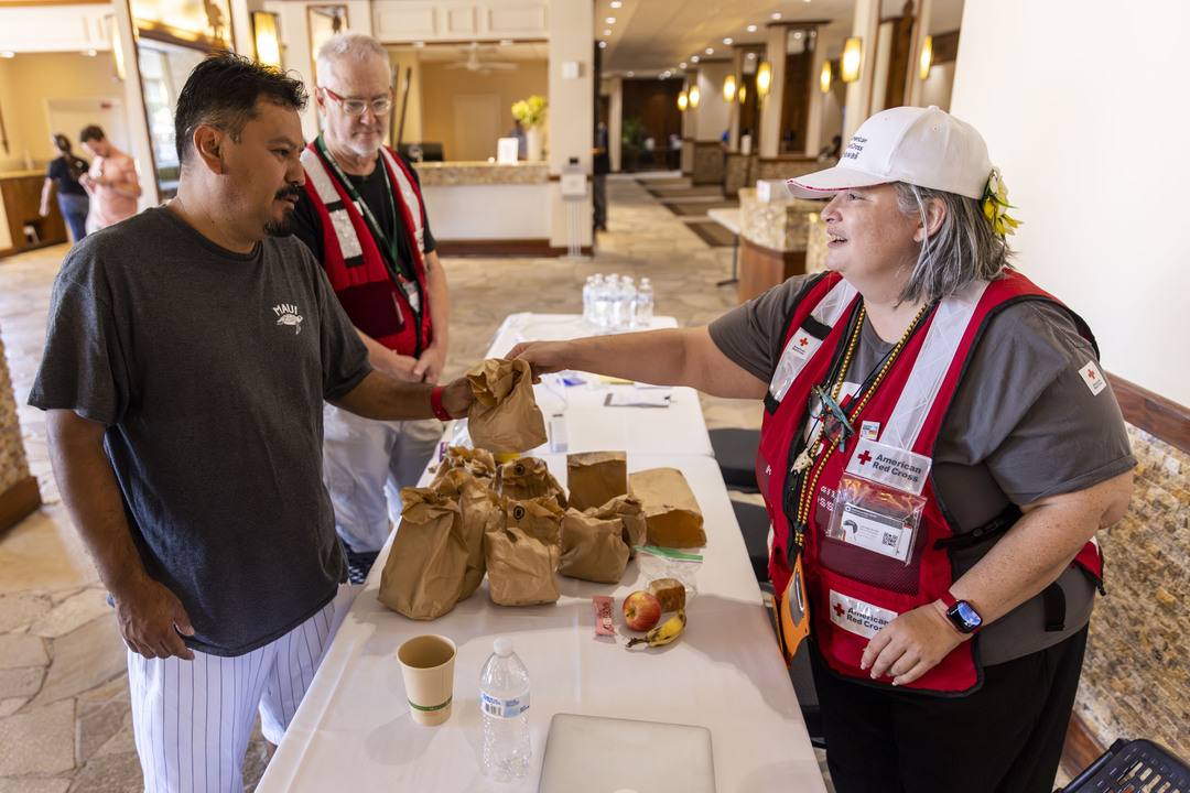 ・州政府と協力して発災直後から緊急避難所をマウイ島・オアフ島に54カ所設置し、延べ220,000 泊分以上の安全な宿泊場所(ホテルなど)を提供。また、41,700の各種救援物資を配付した(9月25日時点)。ホテルでは災害復旧にかかる最新情報や食事、保健医療、メンタルヘルスサービス等をパートナー団体と共に提供している。