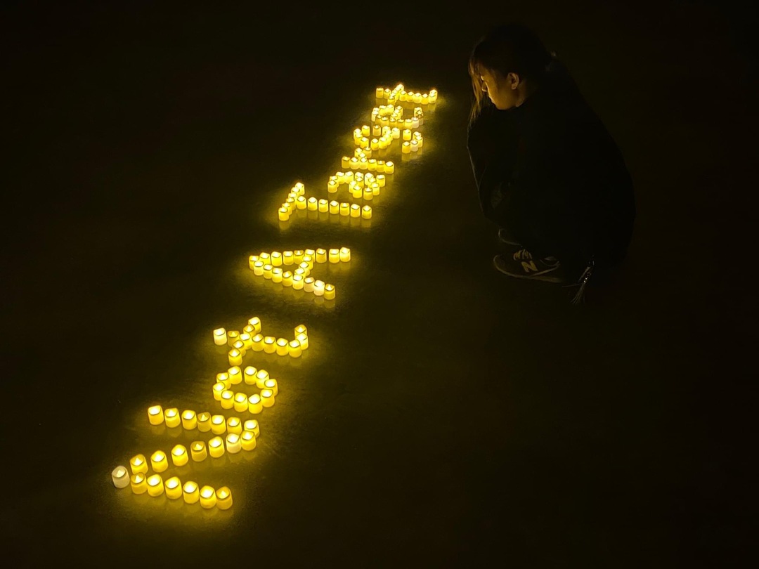 大阪赤十字病院の2階外来横に灯されたロウソクの様子
