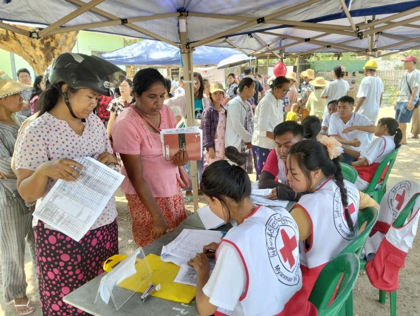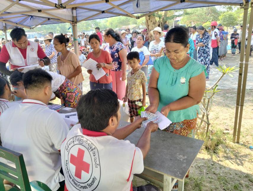 ミャンマー赤十字社がサガインで2日間にわたって行った現金給付支援の様子©MRCS