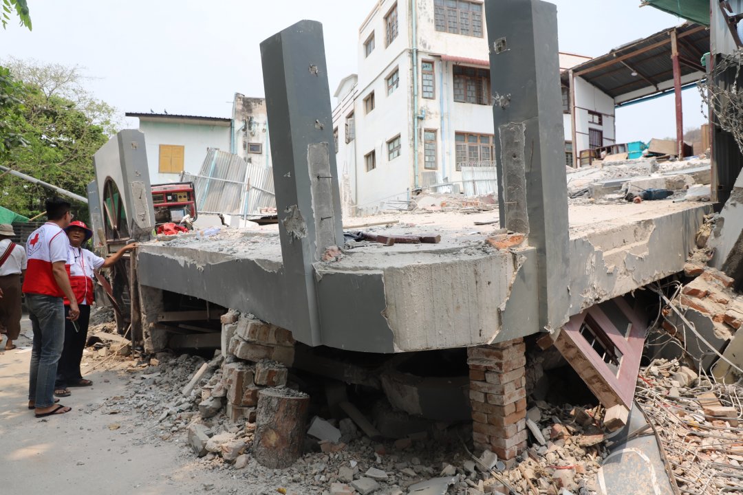速報11でもお伝えしたように、医師など4名の日本赤十字社(以下、日赤)職員がミャンマーに到着し、被災地のマンダレーおよびサガインで活動を開始しています。余震を感じることもあると言いますが、ミャンマー赤十字社の職員から活動状況やニーズの聞き取りを行うほか、今後の支援内容にかかる協議を進め、安全に配慮しながら今後の円滑な活動の展開に向けて準備を進めています。
