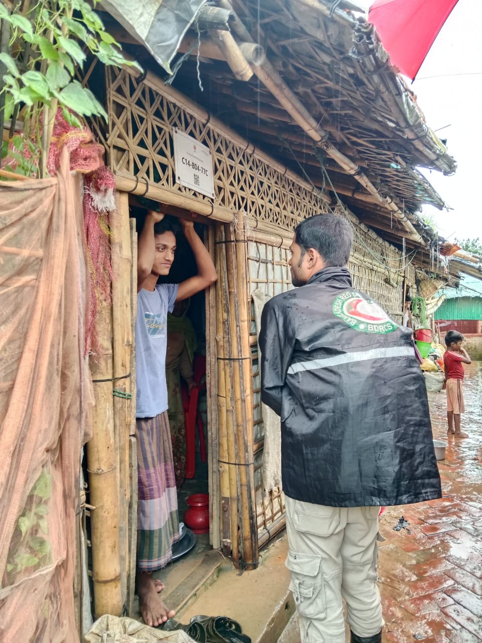豪雨への備えとして、啓発活動や避難の助言を行うボランティア(キャンプ14) ©JRCS