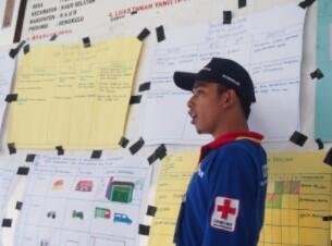 赤十字は、人々の埋もれた声から地域の課題を見つけ出すためのノウハウを積み上げてきました。私たちはこれを脆弱性と能力調査(VCA)と呼び、村づくり支援の初期段階で用いています。これは、地域の人々が中心となって、村で起きた過去の災害記録から危険な場所を特定したり、伝統行事などの中で防災の大切さを伝える時間があるかなど、村の中の強みや弱みをひとつひとつ明らかにしていく調査です。