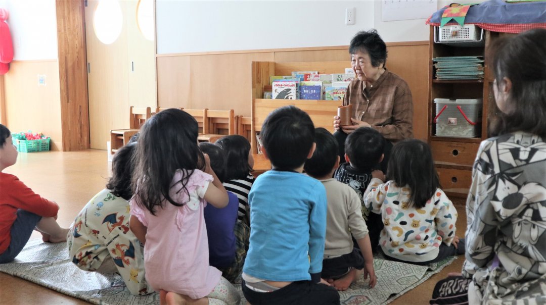 また、個人ボランティアの方々も園に来て、絵本を修理してくれたり、小道具等を使わない語り聞かせや指あそびなどを通して、子どもたちと楽しい時間を過ごしています。