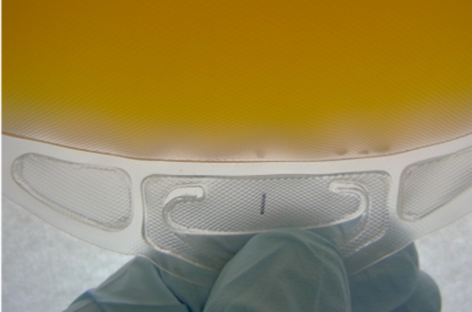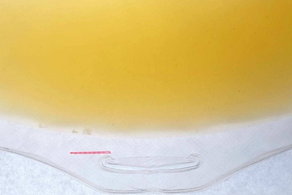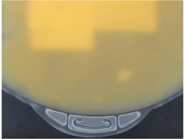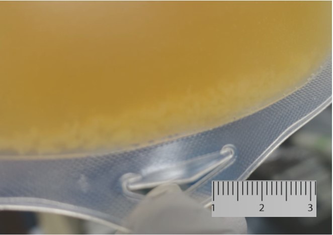 血小板製剤の外観 通常みられる凝集物の例 細菌スクリーニング導入後は写真のような微細な凝集物がみられる血小板製剤をお届けする場合がありますが、安全性、品質は凝集物がない製剤と同等です。問題なく輸血に使用できます。 使用できない製剤(凝集物)の例 多数の凝集物や大きな凝集物がみられる血小板製剤は供給されませんが、輸血直前の外観確認で以下の写真のような凝集物がみられた場合は、最寄りの赤十字血液センターにご連絡ください。 ※無断転載を禁じます。