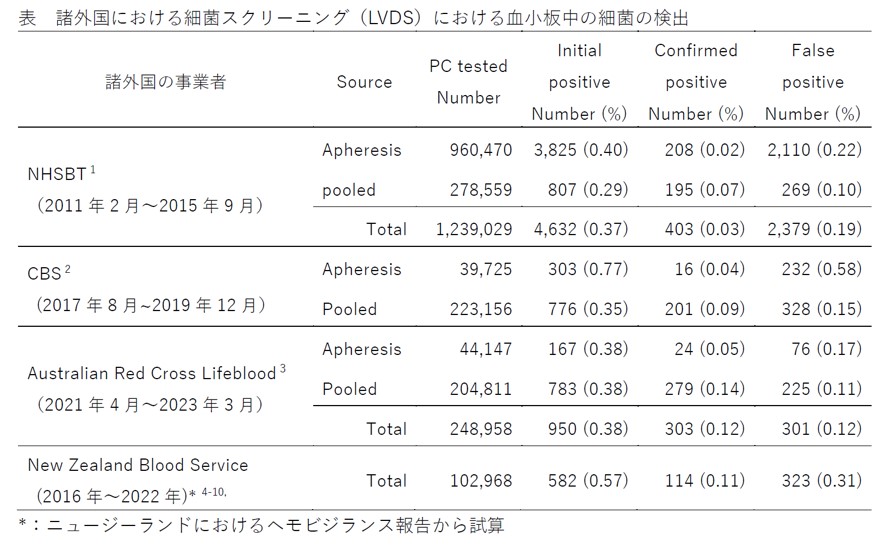 [参照:細菌スクリーニングを導入した血小板製剤の薬価基準収載及び供給開始等のお知らせ]