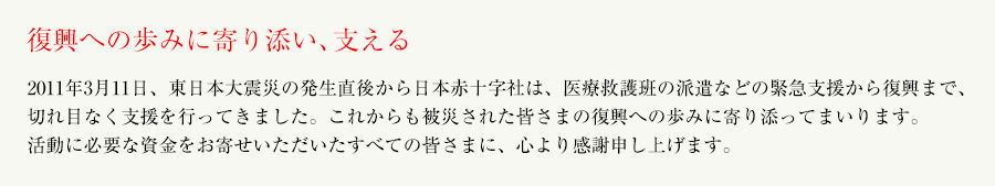 3月11日の震災直後から行った医療救護活動や救援物資の配付、義援金の受付状況などをご紹介します。