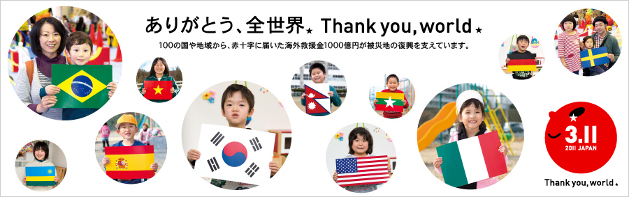 支援してくださった世界の皆さんに感謝の気持ちを伝えたい。あなたも、日本で、そして海外で、世界の人々に「ありがとう」を伝える一人になってください。