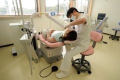 歯科診療医師 斎藤政二(まさじ)先生のコメント「この仮設病院は、町民の皆さんが肌で感じて本当に喜んでいる。ここで初めて診察した時は涙を流した人もいた。プレハブの時は、園芸用のポンプで加圧した水を診察台につなげて、手元から患者さんの口にシューッと出るようにしていた。排水もジョーロに流れ出るようにしてたまった水をバケツで看護師が捨てに行っていた。今は普通に水道が使えるこの仮設の建物になって、本当に助かっている。」