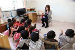 伊藤尚人(たかひと)君(5歳)が泣くこともなく仮設住宅から40分強のバス通学ができていることに、母親の伊藤順子さんは胸をなでおろします。震災以降、避難先では予定に見通しがつかなかったために自宅で過ごすことが多かった尚人くん。集団生活を送っていなかったためか言葉づかいが乱暴になり、友達と仲良くできるかの懸念もありましたが、「毎日楽しそうに通い、“友達とカルタやトランプで遊んだ”などと報告してくれています」。