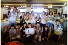 「サマーキャンプに参加しなければ絶対に会えなかった人と友達になれた!」とうれしそうに教えてくれたのは、宮城県から参加した五十嵐かなた君。自由に選択できるプログラムではレザーワークに挑戦しました。「皮に刻印を刻むのが楽しかった。皮は使えば使うほどいいというので、バッグなどにつけたいです」と、出来上がったキーホルダーに満足げな様子でした。(写真:第11グループのお友達全員で記念撮影(写真中央でグループパネルを持つ五十嵐くん)