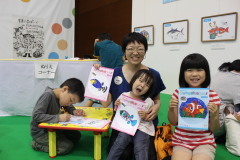 さかなクンはステージで楽しい魚クイズを披露。イワシやカレイの絵を描きながら、子どもたちにその生態を説明してくれました。