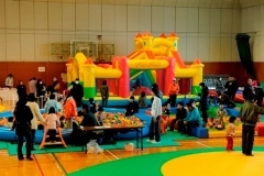 回の開催では、体育館いっぱいに巨大エアクッションでできた遊具やボールプールを並べ、日ごろ屋外活動が制限されている子どもたちの運動不足解消や心身のリフレッシュを図りました。遊具の他、体操教室、絵本の読み聞かせ、手遊び歌、折り紙でつくる「ふるさとアート」など、楽しい企画がいっぱい。週末には、ゲストによるスペシャルライブなども実施。