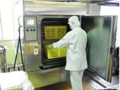 調理員の皆さんからたくさんのコメントをいただきました。「真空冷却機は一度に大量の食品を冷やせるので、出来上がりもきれい。食中毒防止にもつながります」(写真:真空冷却機を扱う調理員)