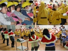 一方、岩手県大船渡市の明和保育園では、移動映画館にあわせてクリスマス会が開催されました。クリスマス衣装に身を包んだ岩手大学青年赤十字奉仕団が「あわてんぼうのサンタクロース」の合唱とハンドベル演奏をプレゼントすると、園児たちも加わり元気な歌声を会場いっぱい響かせました。先生からは「子ども達にとって、イベントは一大事で、とても楽しい出来事。今回クリスマス会をこんなに立派にできたことは本当に嬉しい」といった感想が聞かれました。