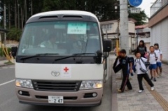 岩手県の山田町では、8月19日より日本赤十字社の支援でスクールバスを運行しています。朝夕にそれぞれ3つのルートを設定し、2つの小学校に子供たちを送迎します。3月11日の津波では山田町も甚大な被害を受け、住民の多くが、新たに高台や内陸部に整備された仮設住宅に入居しました。その結果、子どもたちは学校まで歩いて通うことが出来なくなり、保護者が車で送り迎えをするなど、大きな負担になっていました。日本赤十字社は、こうした状況を改善し、子どもたちが安全に学校に通えるよう、スクールバスの運行を支援することにしました。