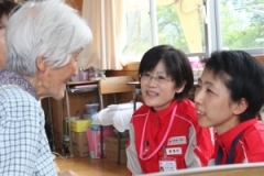 陸前高田市立第一中学校の避難所内にある高齢者ルームでは6月21日朝、秋田赤十字病院の井上貴子看護師と小松恵智子看護師が高齢者の方々の間を回って、血圧を測ったり、健康状態を尋ねたりしていました。