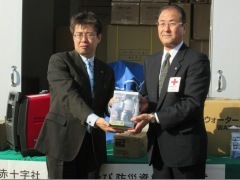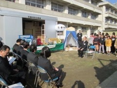 石巻市の副市長や教育委員会教育長などが参加し、同市の開北小学校で行われた贈呈式で亀山市長は「東日本大震災の際の反省に立ち、災害備蓄計画を策定し、整備を進めていますが、まだ完全ではありません」と現状を報告。こうした中、日赤の支援により防災倉庫と資器材が市内54カ所に配備されたことについて感謝を述べるとともに、「市と日赤とはあらゆる分野での更なる連携を図っていく必要があると考えます」と関係強化に期待を寄せました。