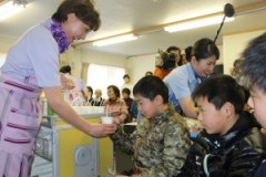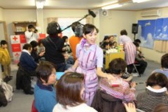 日本赤十字社と全日本空輸(ANA)がタイアップした復興応援イベント「こうくうフェア in ふくしま」が2月8日、福島市の笹谷東部応急仮設住宅で開かれ、福島県浪江町から避難されている皆さんが飛行機搭乗体験や口腔ケア教室など楽しいひと時を過ごしました。