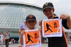 「赤十字支援プロジェクト」を立ち上げ、日本赤十字社の活動を応援している読売巨人軍は8月11日、東京ドームで行われた対ヤクルト戦を「赤十字応援デー」として、グラウンドの内外で赤十字のPRを行いました。