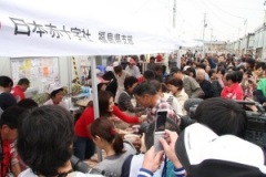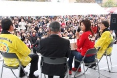 30日午前、福島市内で開かれた「JAまつり2011」にサプライズゲストとして参加しました。会場となったJA福島ビル前の特設会場ではさまざまな出店が並び、朝から多くの市民の皆さんでいっぱいです。紀香さんが舞台に立つと、会場は大きな拍手と歓声に包まれました。吾妻雄二組合長と菅野孝志専務らとトークイベントで、福島県産の米を握ったおにぎりやりんごなどを頬張った紀香さんは「おいしい」を連発。「寒さも風評被害も吹き飛ばすように、みんなで福島の元気、明るい福島を発信していきましょう」と呼びかけました。