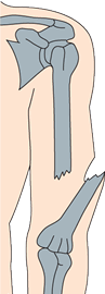 開放骨折とは、骨折した骨の端が皮膚を突き破って露出したりして、骨折部とつながるきずが皮膚にあるものをいいます。きずからの出血が多くなります。また、そのきずを通じて、病原菌が、骨内やその周辺に入り込み治癒しにくい感染を生じる場合があります。開放骨折は重度の骨折の一つです。