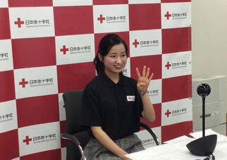 それらの活動について、海外の視聴者にも伝わるよう日本語に英語を織り交ぜ、写真や動画も見せながら伝えました。姉妹社の赤十字ボランティアからも、中野さんへのエールのコメントが送られました。