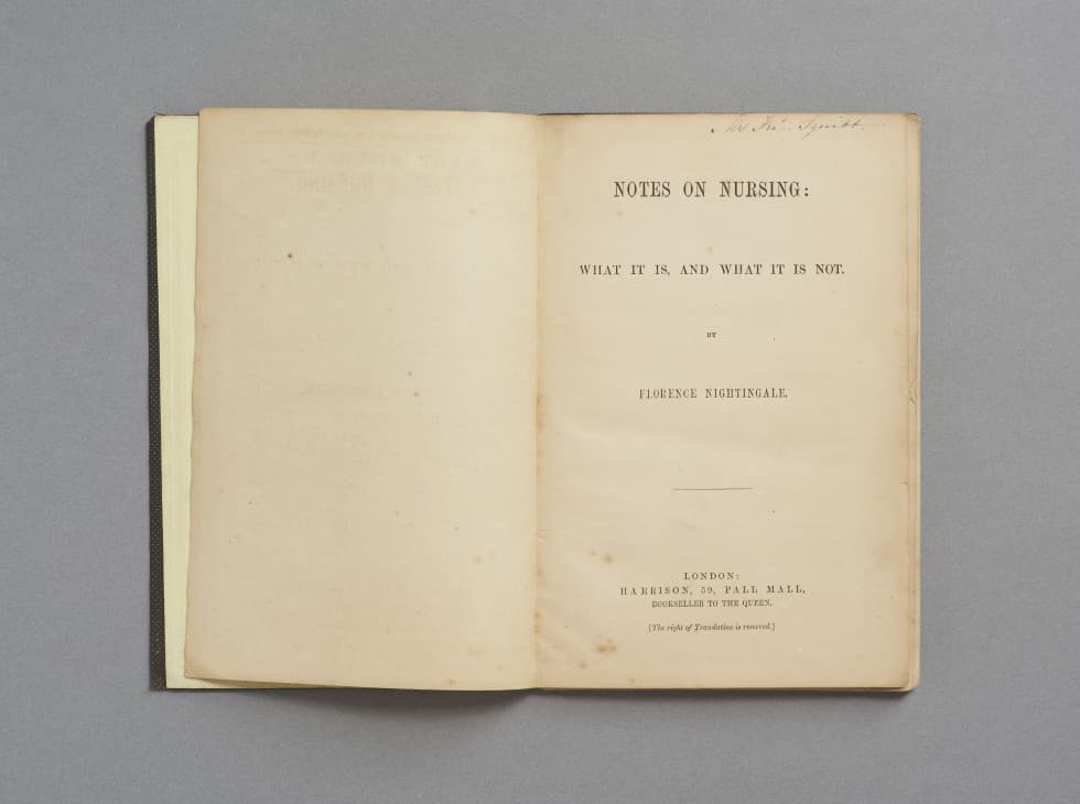 クリミア戦争の救護活動から戻ったフローレンス・ナイチンゲールは、1859年にNotes on Nursing『看護覚え書』という、誰もが気軽に読める手帳サイズの本を著しました。