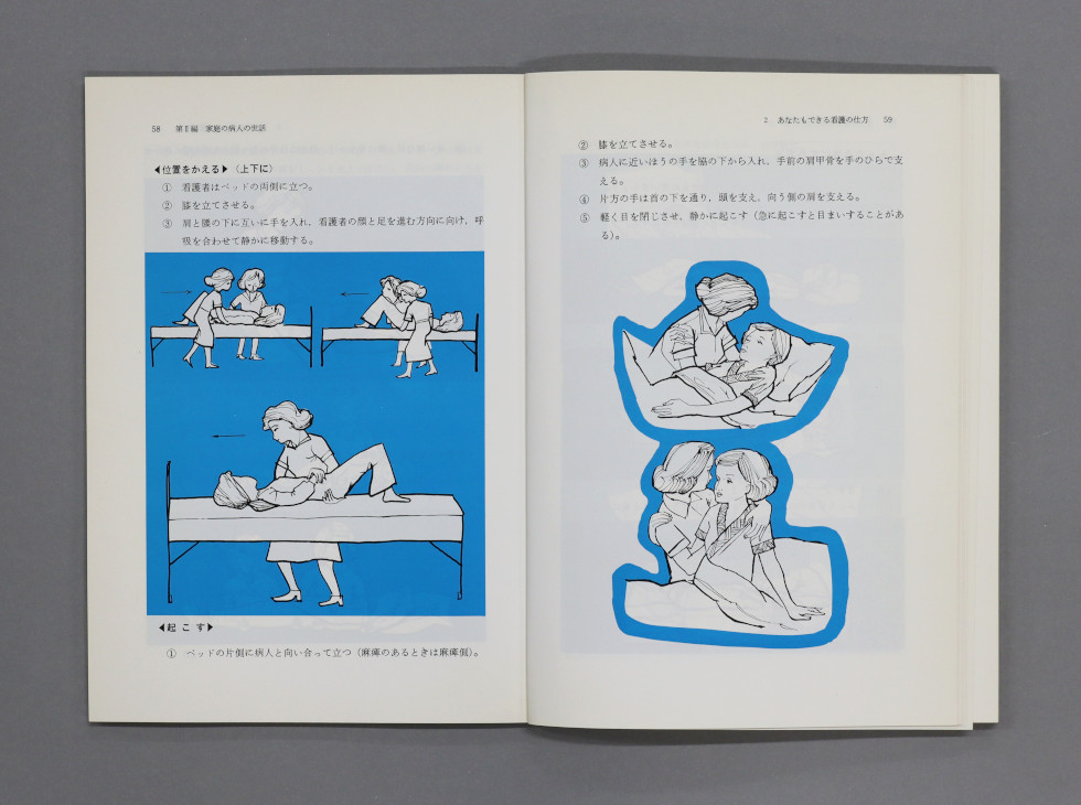 そして、同年に作成した教本『家庭看護』も、図解を増やすなど、わかりやすさを追求しました。これは、1977(昭和52)年の日本赤十字社創立100周年に向けた記念事業の一環でした。