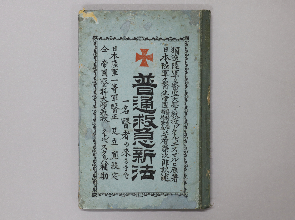 1887(明治20)年、帝国大学医学生の芳賀栄次郎がエスマルヒの著書を日本語に訳した『普通救急新法』が出版され、日本赤十字社に大きな影響を与えます。